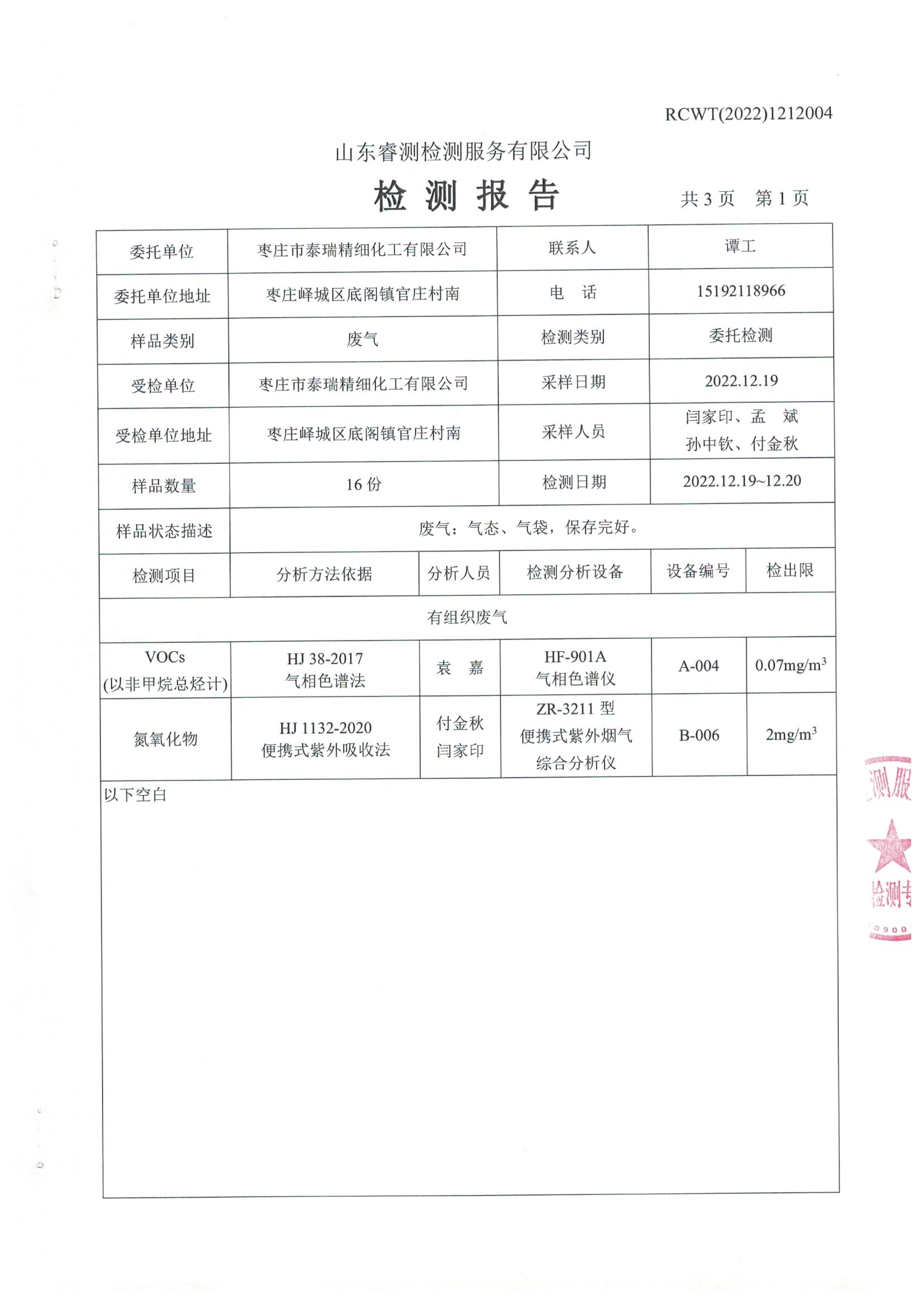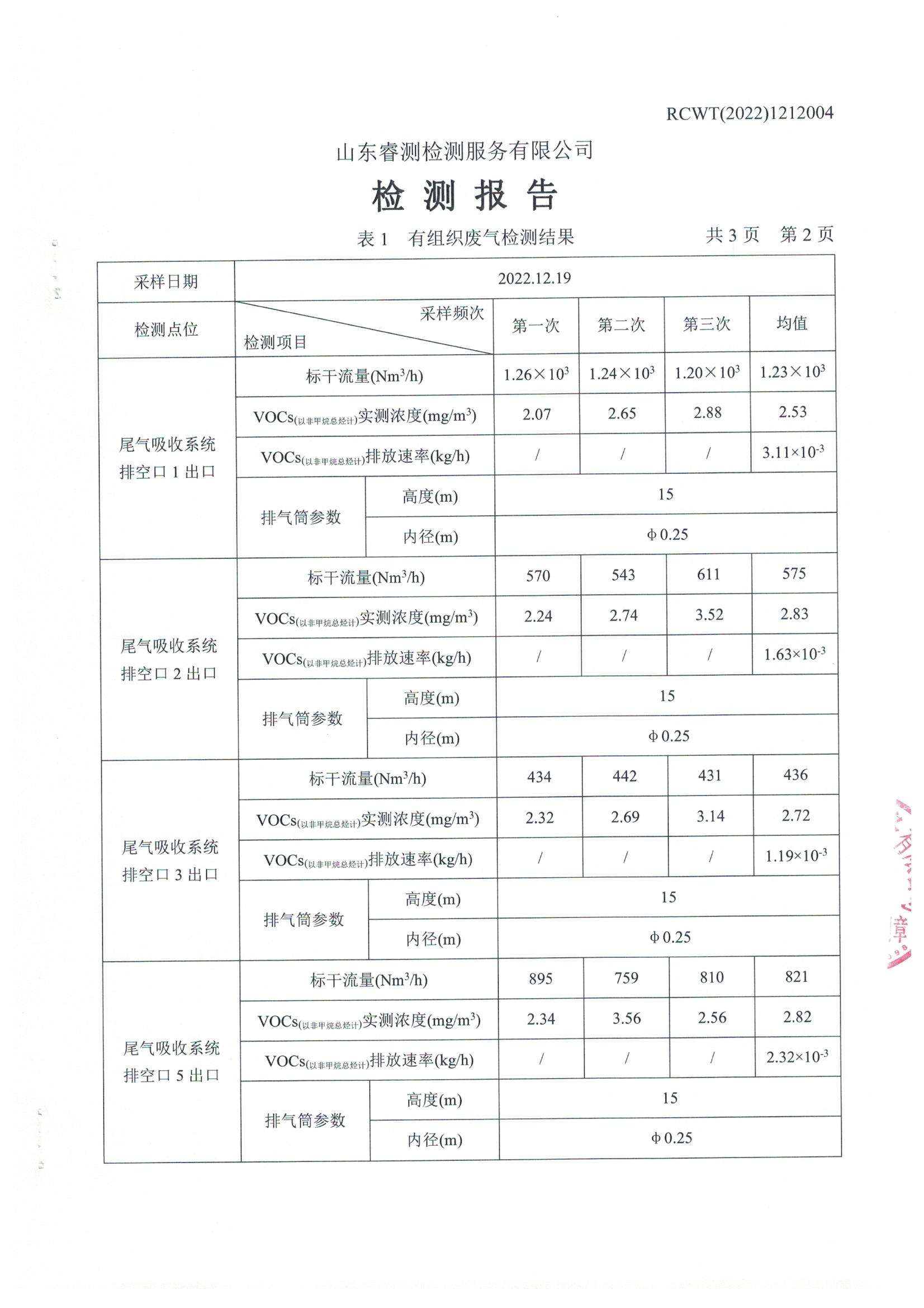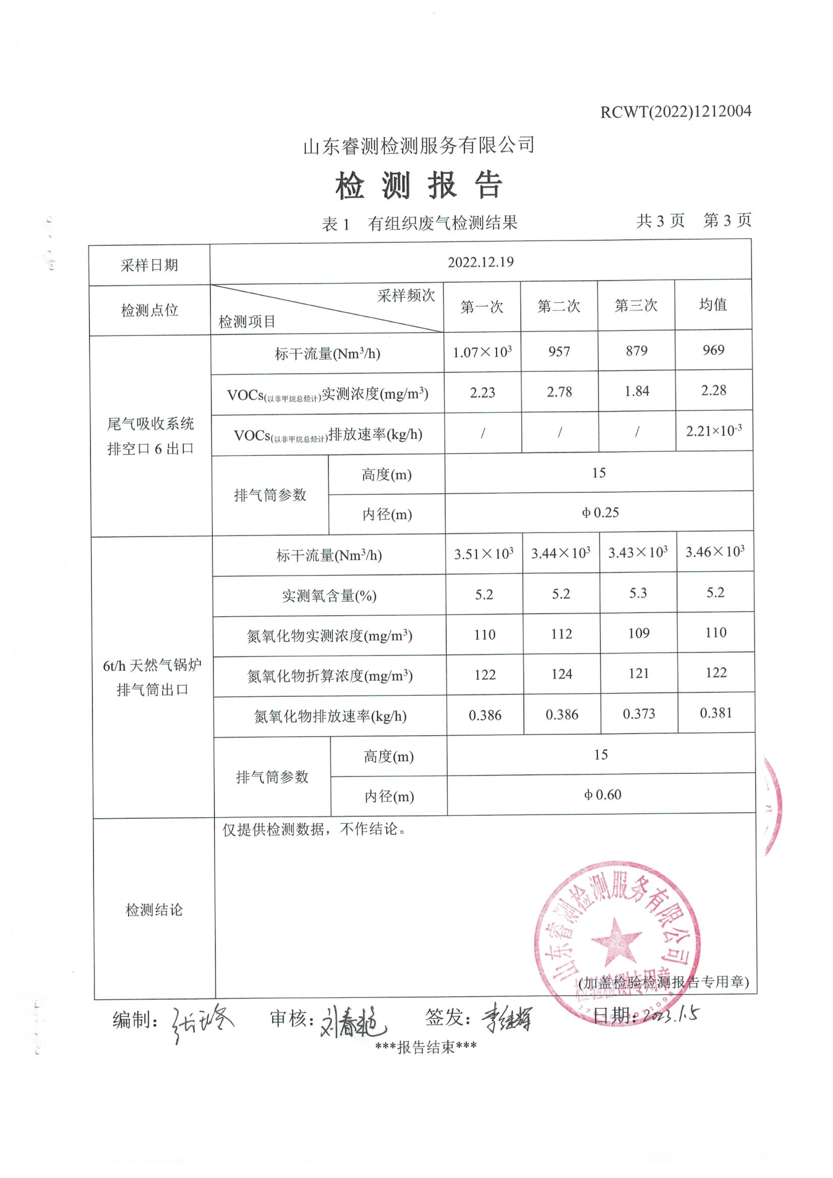 2022年12月份自行檢測報告