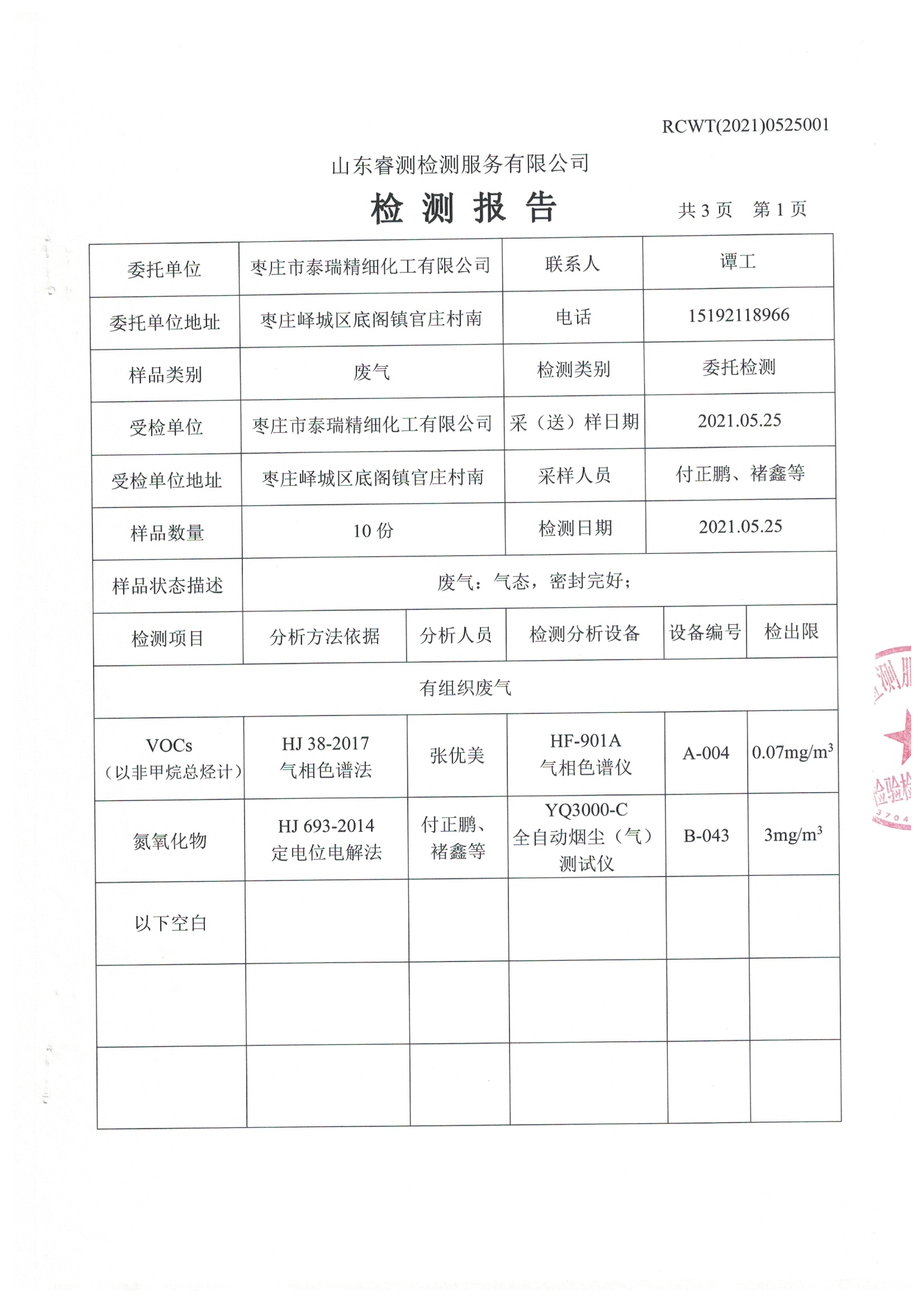 2021年5月份自行檢測(cè)報(bào)告
