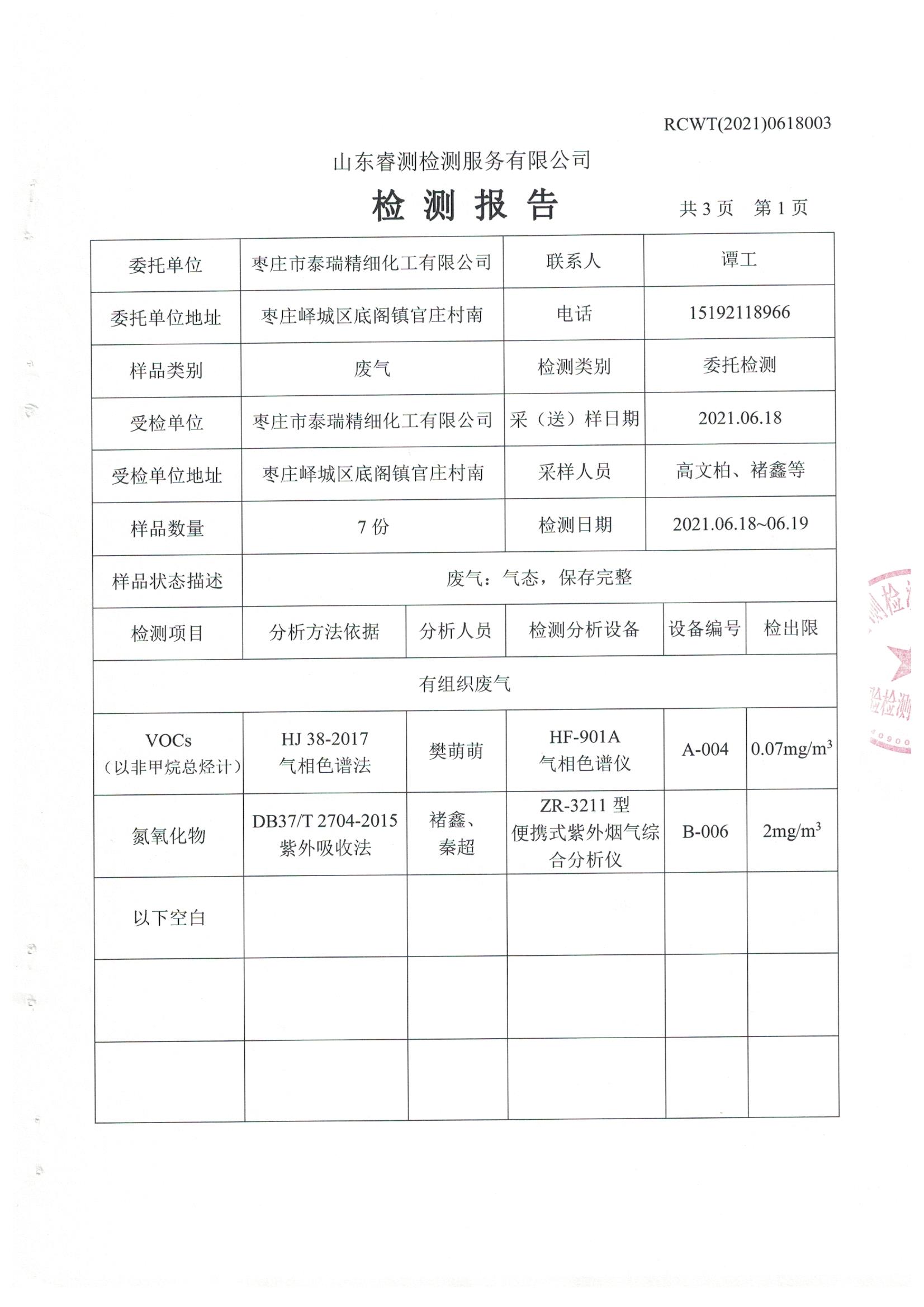 2021年7月份自行檢測報告