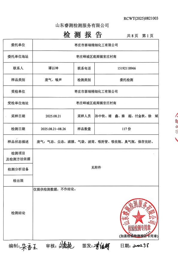 2025年泰瑞精細(xì)化工有限公司土壤檢測報告